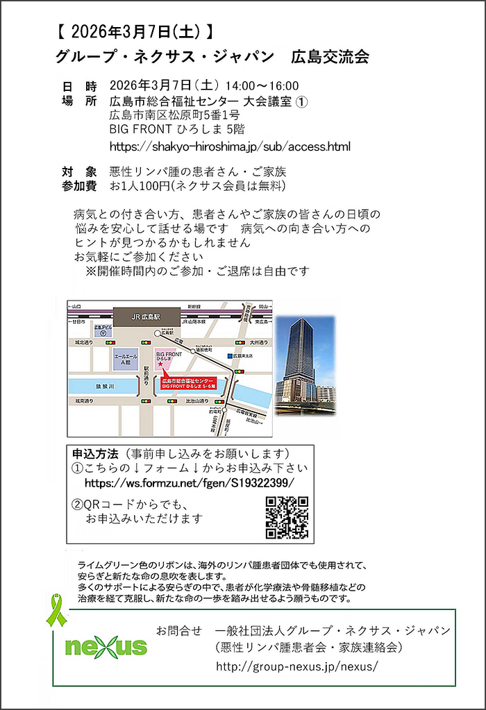 一般社団法人グループ・ネクサス・ジャパン広島支部が主催する広島交流会が2026年3月7日(土)に広島市総合福祉センターにて開催されますので、お知らせいたします。