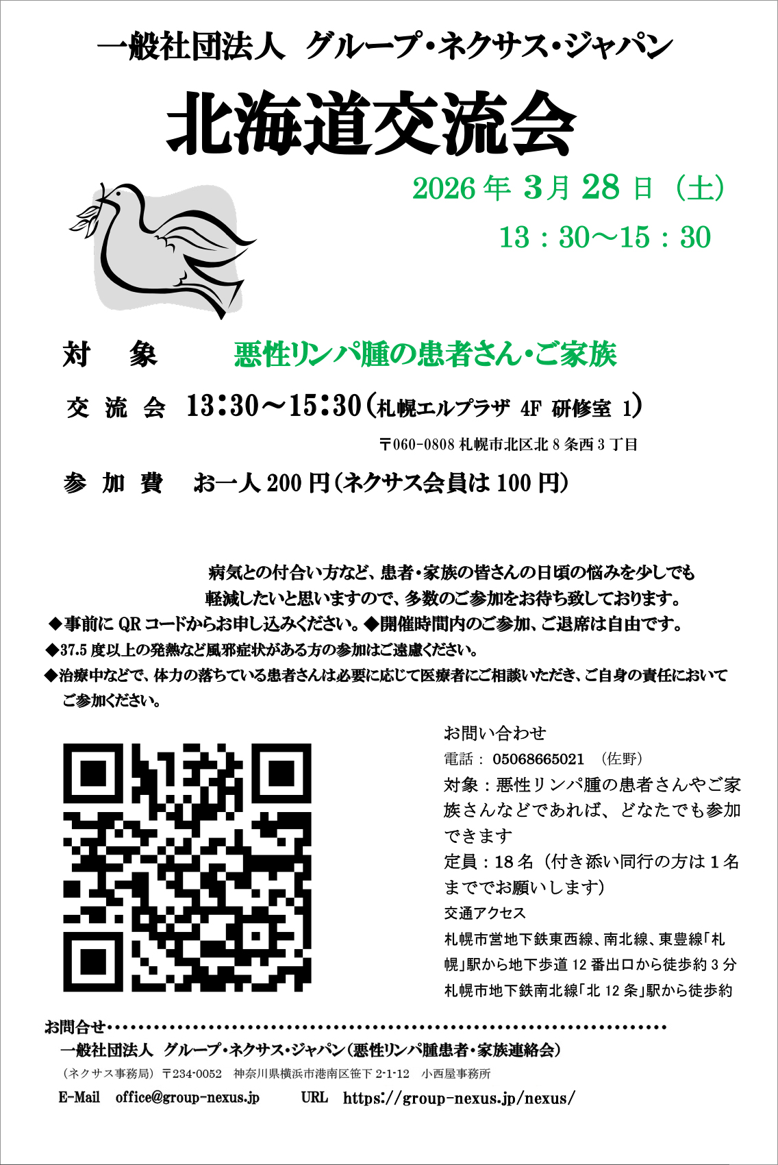一般社団法人グループ・ネクサス・ジャパン北海道支部が主催する北海道交流会が、2026年3月28日(土)に札幌エルプラザにて開催されますので、お知らせいたします。